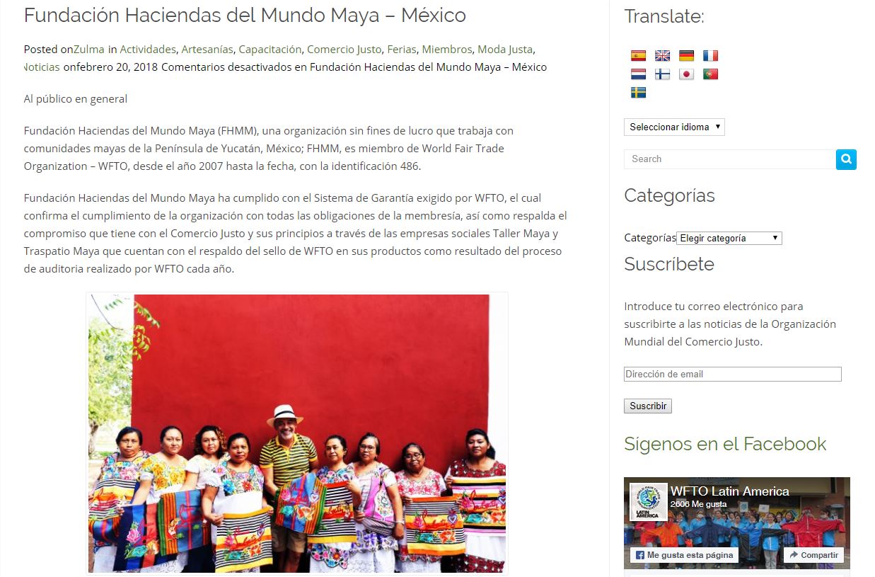 Fundación Haciendas del Mundo Maya (FHMM), una organización sin fines de lucro que trabaja con comunidades mayas de la Península de Yucatán, México; FHMM, es miembro de World Fair Trade Organization – WFTO.